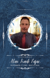 Alan Frank Zajac went to be with the Lord on May 4th, 2024. He was born on November 27th, 1965 in Little Rock, Arkansas and attended school at Oak Grove, North Little Rock.